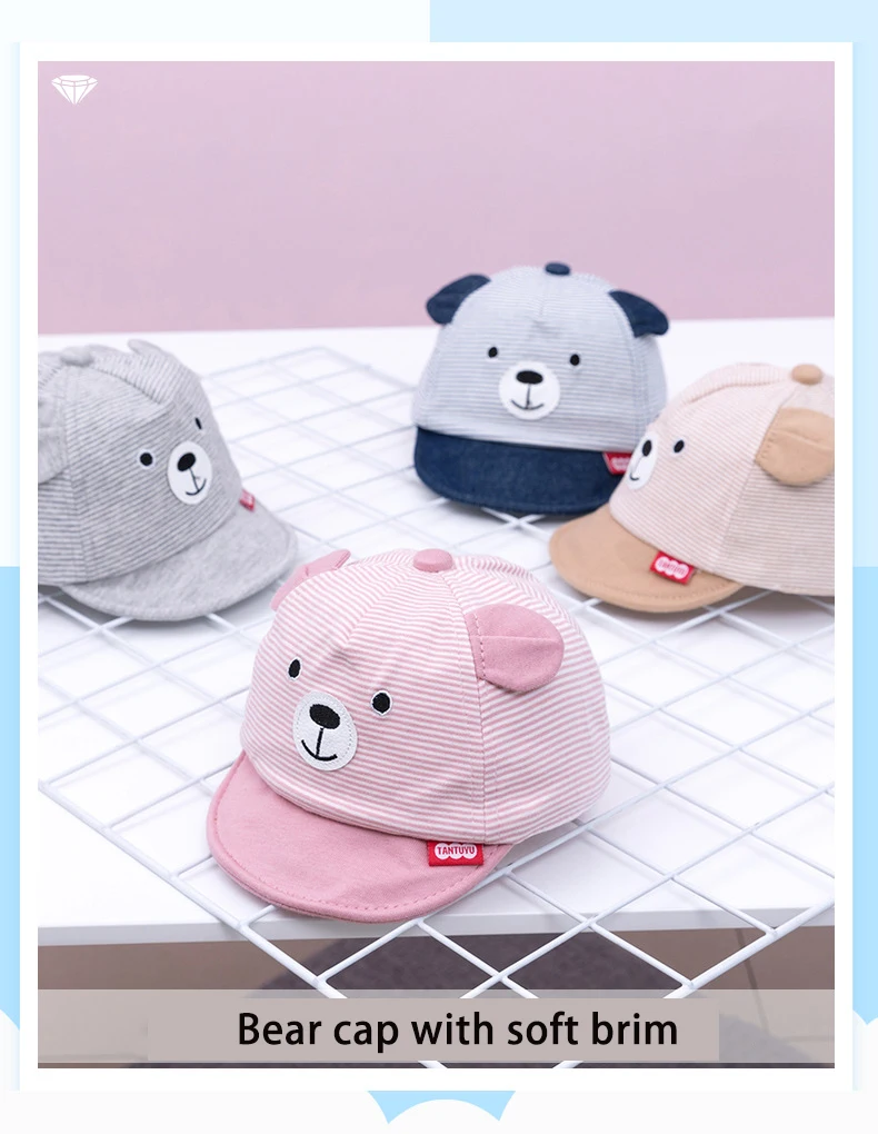 Gorrita de algodón béisbol con estampado de oso niño y niña