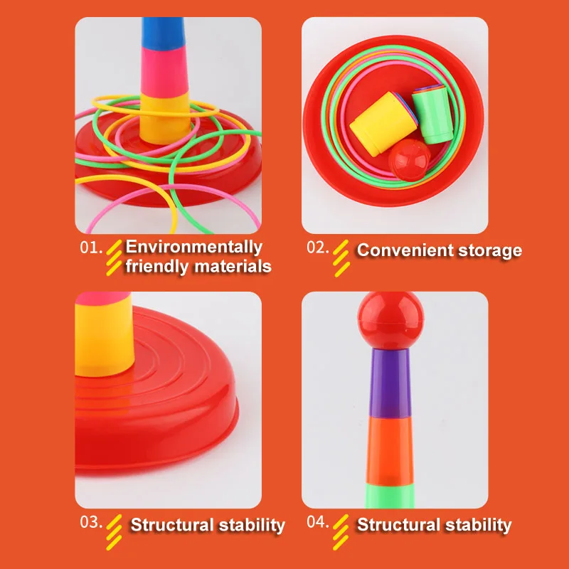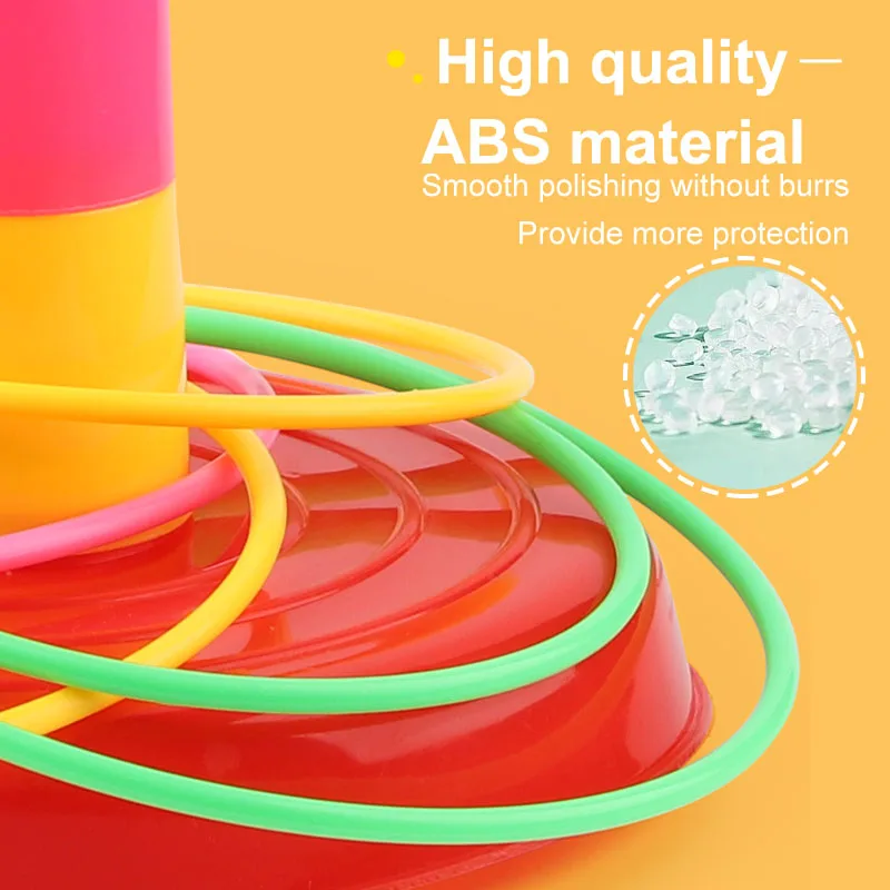 - Función dos en uno: Juego de lanzamiento de anillos y juego de tazas apilables. ¡Vamos, únete al juego! Monta las copas y tira los anillos.